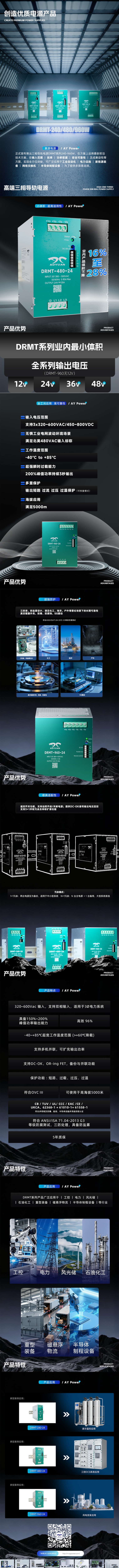 奥源电源丨240/480/960W 高端三相导轨电源DRMT系列